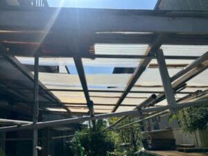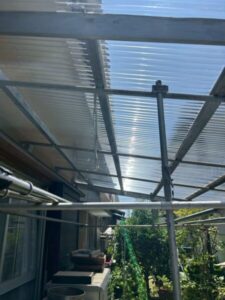 ポリカーボネートの屋根が劣化しているとのことでしたので、新しく全交換させていただきました。