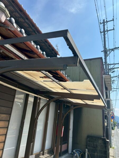こちらのお住まいでも経年劣化によりポリカーボネートが破損している状態でした。