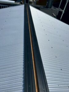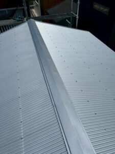 頂上部には、屋根の面と面の隙間を覆い隠す「棟板金」を設置します。