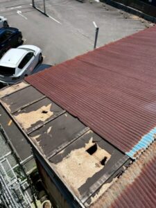 端の部分は錆びて脆くなった波板が強風で飛んでいってしまったとのことでした。