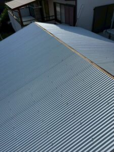 屋根材は錆びにくいガルバリウム鋼板を波の形に加工したガルバリウム波板を使用いたしました。