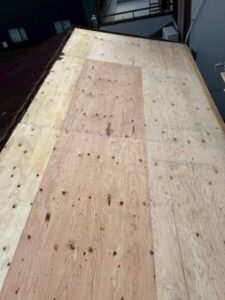 先ほどの垂木の上から屋根の下地となる「野地板」を設置していきます。