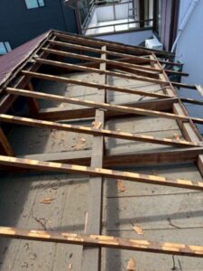 撤去すると、その下には垂木とよばれる棒状の木がでてきます。