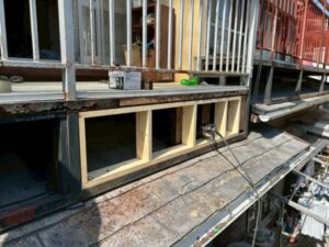 新しく下地に足を組んで補強して、水が外から入り込まないように、ベニヤを貼ってから板金で囲いました。