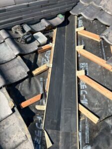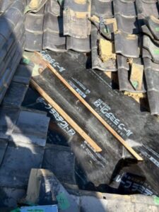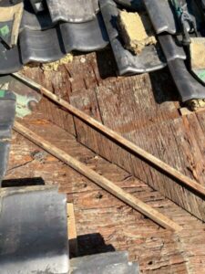 瓦を設置するところには、桟木とよばれる木材を置き、瓦がひっかけられるようになっています。