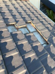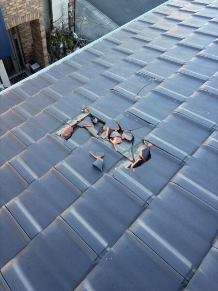 屋根には粘土瓦を使用されていましたが、数枚が粉々に割れてしまっていました。
