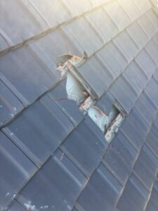 お隣のコロニアル屋根が外れ、こちらのお住まいの屋根まで飛んできたとのこと。
