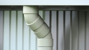 建物の外壁に沿って縦に設置されており、雨水はこの筒の中を通って排水口や排水溝へと運ばれます。